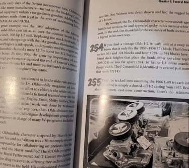 Z książki dowiemy się na przykład o proponowanych nazwach przed produkcją auta, wygranych wyścigach i strategiach, również mniej lub bardziej udane kampanie reklamowe, zapomniane rozwiązania techniczne takie jak hamulce bębnowe na przedniej osi, niezwykłe V8 DOHC lat 60tych, Corvette z 1983, limitowane wersje, opcje "spod lady", "Speed secrets" z epoki, czy tuningowe recepty, które teraz są oczywiste i nieaktualne, ale wtedy się liczyły.