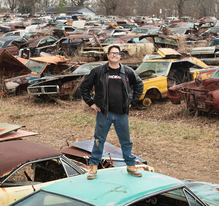 Jeśli jeszcze nie słyszeliście o Stevie Magnante to czas najwyższy. Steve jest obecnie znanym i szanowanym historykiem motoryzacji współpracującym z aukcjami Barret-Jackson. Kiedyś pisał artykuły do Hot Rod Magazine, Car craft, Mopar muscle i nawet doczekał się własnego show zatytułowanego Junkyard Gold, w którym to zwiedzał samochodowe cmentarzyska, wyłapywał ciekawe egzemplarze i bardzo ciekawie opowiadał o ich historii. Obecnie w Motortrend ma mniejsze podobne show ze sklejaniem modeli, na szczęście Steve stał się słynny również na innych platformach na przykład Youtube. Usłyszymy go również w podcastach i wielu innych mediach.